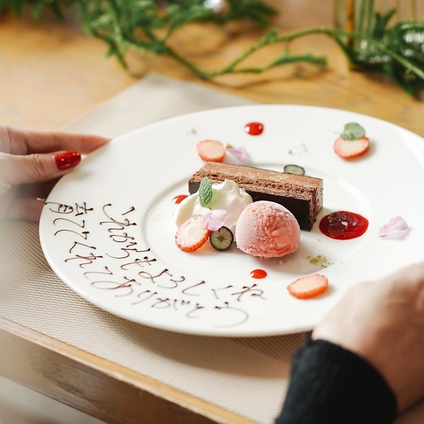 大事な方と過ごす大事なひと時を。お祝いを華やかに彩るホールケーキ付きデザートプレートプランもご用意しております。