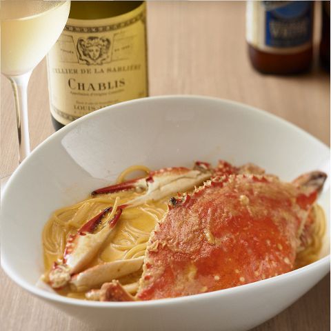 渡り蟹を丸ごと使用した当店人気のスパゲティ