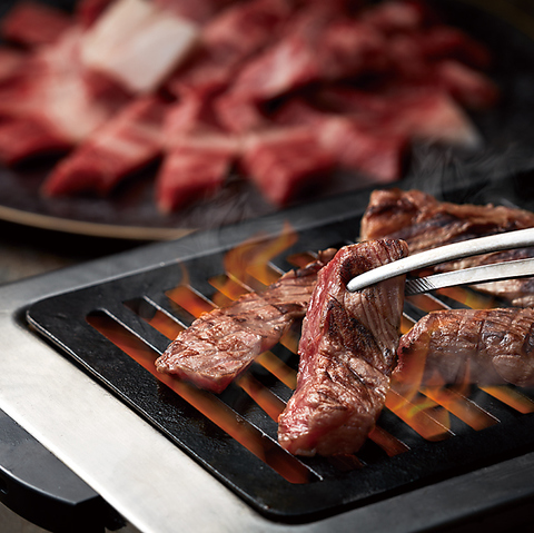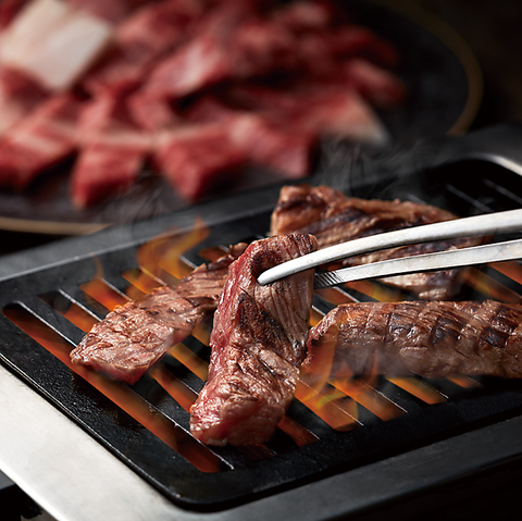 厚切りで仕立てた特選霜降り和牛リブロースをメインに、黒毛牛カルビやミスジ焼きしゃぶ、ねぎ塩牛タンなど多彩な部位を揃えた、当店人気No.1コース。前菜5種盛合せやキムチ、包み野菜も付いた充実内容で、焼肉の醍醐味を心ゆくまでご堪能いただけます。