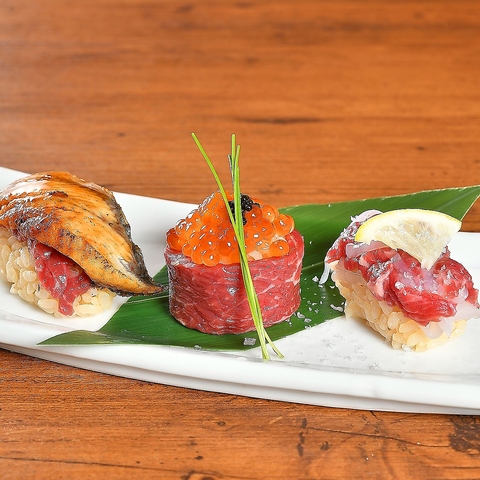 肉寿司や海鮮寿司をすさび湯オリジナルの創作寿司としてお届けいたします。