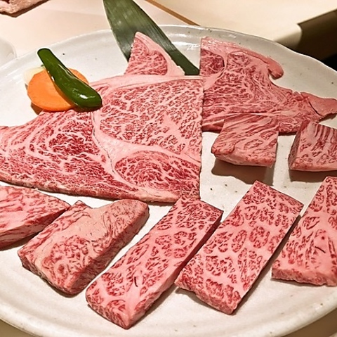 量、質とも単品と同じものをご提供!グランドメニューより、お値段関係なくお好きな物5品選んで頂けます!黒毛和牛A5ランクの特選カルビ1580円、特選ロース1580円、サムゲタン1980円、炙り特選ロースとアボカドサラダ1880円こちらも5品で4000円(税抜)!!