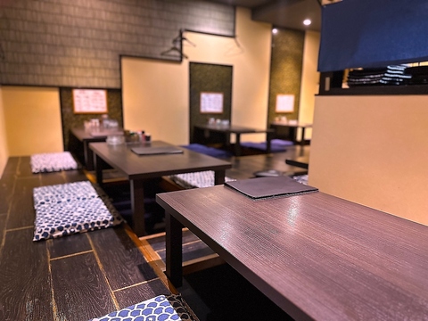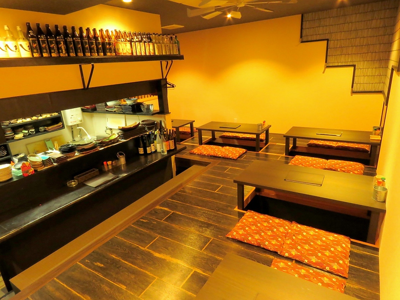 ワンフロアの店内は貸切もOKなので、プライベート空間で愉しめる宴会が可能!!ゆっくりと寛げる掘りごたつお座敷席。10名~貸切可!詳しくはお問い合わせください。