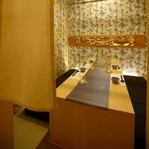 【完全個室】落ち着いた和の雰囲気が漂う店内は少人数様でもご利用頂ける個室席もございますので、接待や会食などのビジネスシーンやデート、記念日など大切な日のお食事にもご利用頂けます。人数やお部屋の希望などのご要望等がございましたら、お気軽にご相談ください。