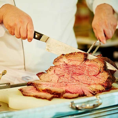 土日祝日限定メニュー牛脂肉のローストビーフが人気。