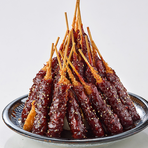 カラッと揚げた串カツを特製の甘辛ダレに漬け込みました。独特の甘みが一度食べたらやみつきに・・!!