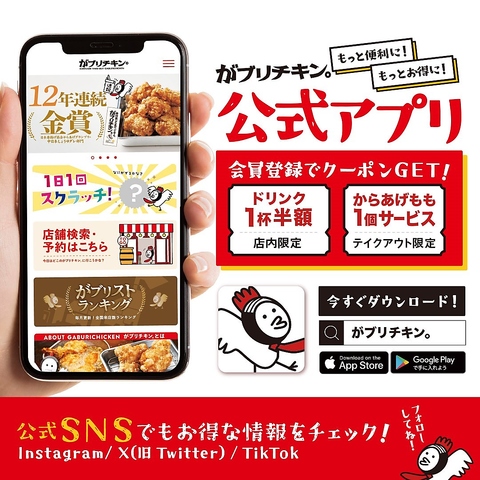 がブリチキン。公式アプリでは、お得な情報が満載!定期的に配信されるクーポンや、来店スタンプを貯めるともらえるクーポンを使って、お得に楽しんでください!