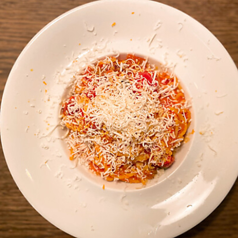 ドライトマトの3種類を贅沢に使用し、甘味とコクを最大限に引き出したパスタです。シェーブルチーズまろやかさとオレンジピールの爽やかな香りがアクセントとなり、最後までさっぱりと楽しめる仕上がりに。〆としてはもちろん、ワインとも相性抜群で様々なシーンにおすすめです。