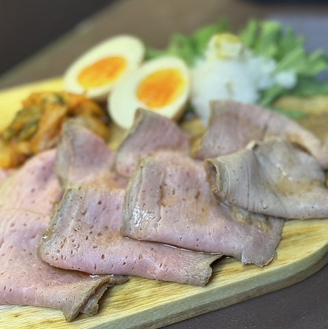 三元豚の豚を低温調理したレアチャーシュー。食べたら口の中でとろける絶品!