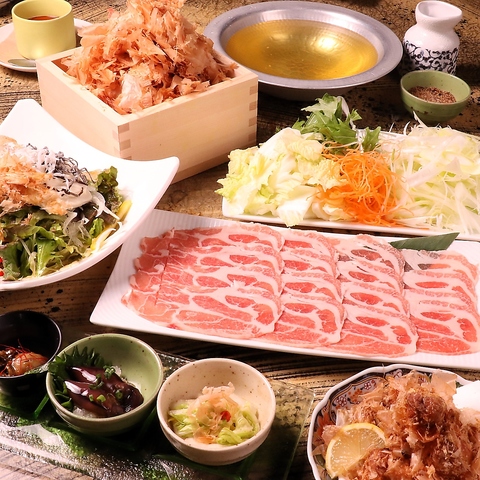 ランチ限定【3H飲放付】かつお節出汁の栗豚しゃぶしゃぶが楽しめるの飲み放題付き全8品【うまみ】3,000円