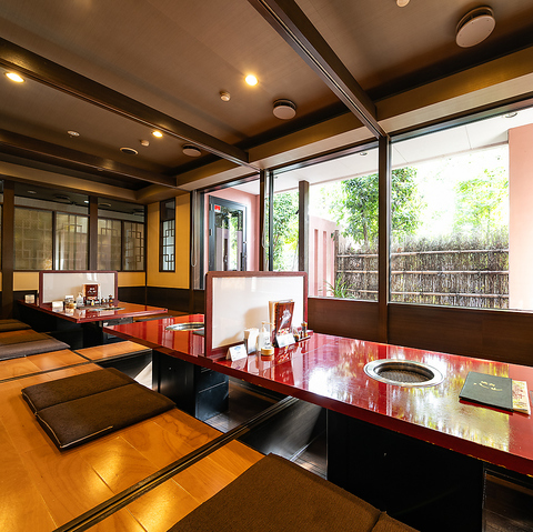 当店は、さまざまなシーンに合わせてお楽しみいただける多彩な座席をご用意しております。家族連れやグループで賑やかに過ごせるテーブル席、デートや接待に最適な完全個室、くつろげる座敷席、幅広いスタイルでお楽しみいただけます。お客様一人ひとりの時間が特別なものとなるよう、空間づくりにもこだわりました。