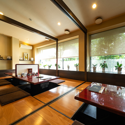 素材から空間など隅々にこだわった八山。広々とした店内スペースは大けやきのある庭を見ながら、お祝いや家族の記念日・デートなど大切なお客様の接待にもご利用いただけます。奥座敷を使って専門の出入り口を使えば、他のお客様と顔を合わさずに隠れ家的宴会も可能です。