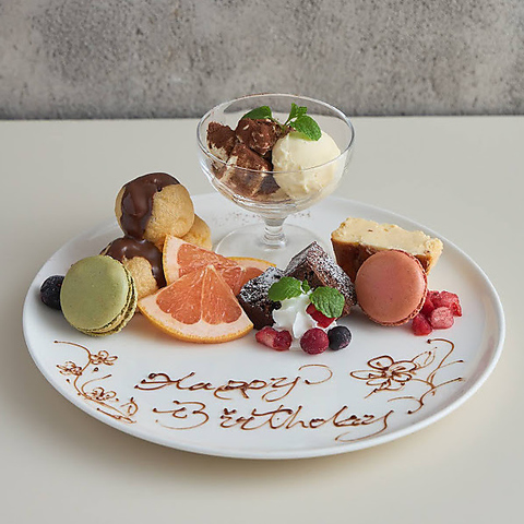 忘れられない記念日・誕生日の演出はお任せください♪デザートプレートはシェフお手製のメッセージ付。1650円(税込)でご用意致します☆お電話でメッセージ内容を事前にお伝えください☆サプライズはディプントで♪