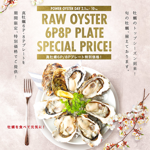 2/1~2/10まで。生牡蠣6、8ピースプレートを特別価格にてご提供いたします!