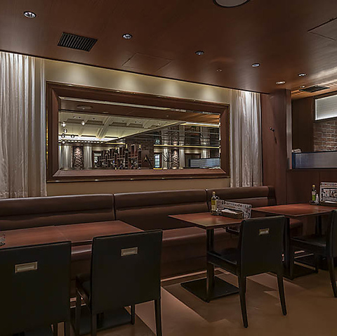 東京・八重洲駅直結でご来店いただける店内で、ゆったりとワイン×牡蠣をお愉しみいただけるお席です。接待・東京駅でのお食事にも◎