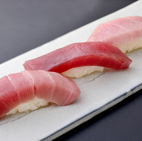 とりわけ力を注ぐ「近海生本まぐろ」。一度も冷凍されることなく、細心の温度管理で届けられたその身は、まさに極上そのものです。季節ごとの海域と脂ののりを見極め、豊洲市場から“いま最も旨い”まぐろだけを厳選。店舗に届いたあとは、乾燥を防ぐために氷を敷き詰めた檜の保存箱で静かに熟成させ、旨み・香り・食感を最大限に引き出します。