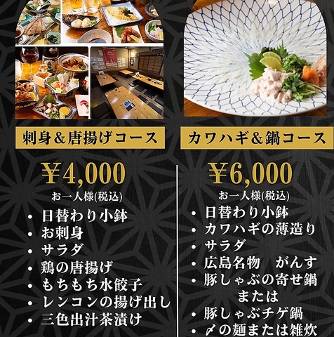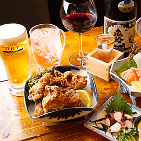 刺身・唐揚げ・小鉢まで充実の名物料理。宴会や仲間との集まりにぴったりの満足コースです。