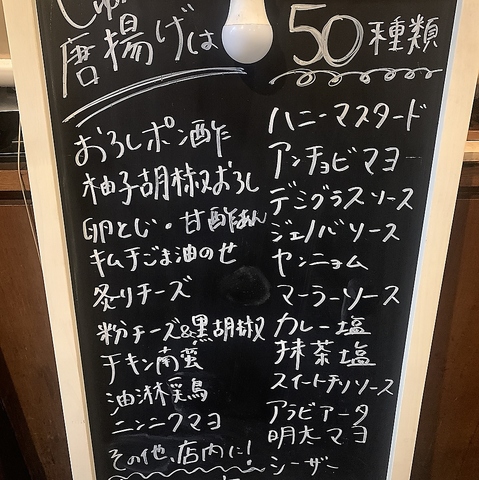 50種類から選べる大人気の名物唐揚げ。定番から変わり種まで揃い、グループ利用にも大好評です!