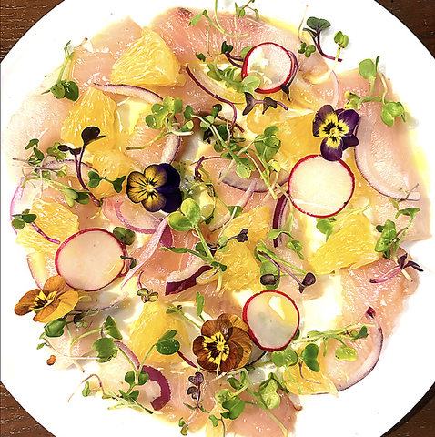 瀬戸内の魚介や牡蠣、峠下牛、地元野菜など、広島の旬の食材を中心にした料理をご用意しています。素材の味を大切に、シンプルな調理でその日の一皿を仕上げます。