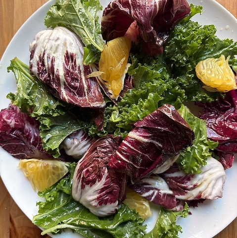 地元農家から届く旬の野菜を使った一皿。シンプルな調理で、野菜本来の味わいを楽しめます。