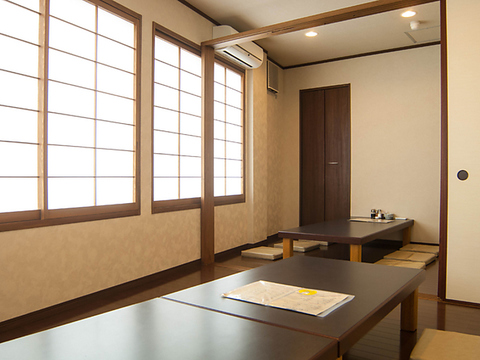 我が家気分でゆったり寛げるお座敷席!靴を脱いでのお酌やお食事は思ったよりも解放感があり、リラックスいただけると思います♪お子様連れでも安心して楽しんでいただけます♪いつもよりもゆったりとした空間をお座敷にてお過ごしください。