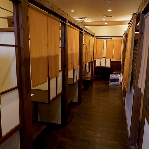 暖かみある照明が雰囲気の良さを引き立ててくれます。暖簾やブラインドで目線は仕切られている半個室となりますので他のお客様を気にすることなくゆっくりとお食事や会話をお楽しみいただけます。その他、サプライズなどのご要望がございましたらお気軽にご相談ください。