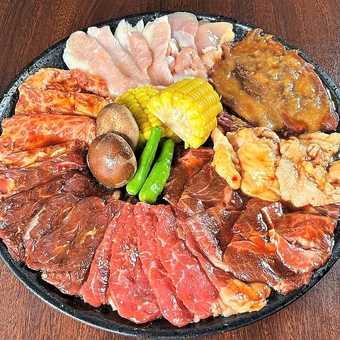 【焼肉セット<中>クーポン利用で4290円(税込)⇒3740円(税込)】グループ利用の方にお勧め★これさえあれば大満足!!名物カルビ・大ホルハラミ・ブツ切りカルビ・ハラミ・ロース・豚トロ・とり皮・鶏もも・焼き野菜(お肉600g)