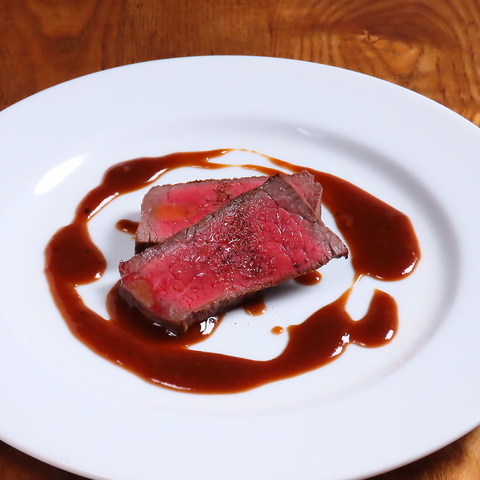 非常に希少な部位「イチボ」。一頭からごくわずかな量しか取ることができません。そんな貴重な部位をアロマカノーロでは贅沢にご提供しております!弾力ある食感と甘みのある脂を存分にお楽しみください。こちらの大人気メニュー和牛イチボのステーキが込みのコースもご用意しています♪