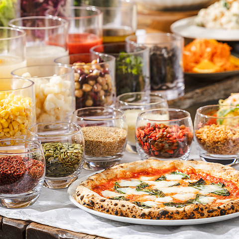 自慢のピッツァやパスタが食べ放題♪前菜やサラダにカレーなど人気のアイテムも多数ございます。