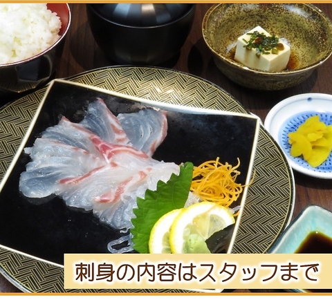 旬の鮮魚を贅沢に盛り付けた、当店自慢の刺身定食。魚本来の旨みと甘みをしっかり味わえる一品です。彩り豊かな盛り合わせに、味噌汁と小鉢、ご飯が付いた満足の内容。新鮮さにこだわる当店ならではの味わいを、ぜひご堪能ください。