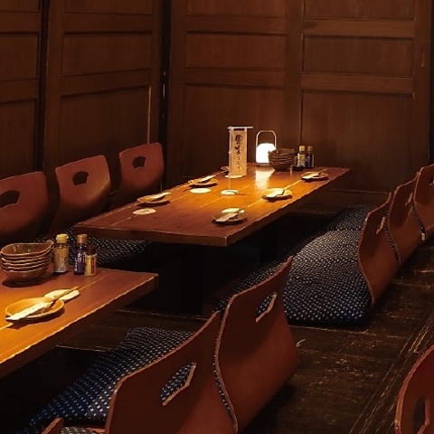 掘りごたつ個室。飲み会や合コン、宴会など少人数から大人数までさまざまなシーンに対応可能。掘りごたつなので疲れた足を伸ばしてくつろぐことができます。ボリューム満点の宴会コースも各種揃えておりますのでそちらも合わせて是非ご利用ください!!