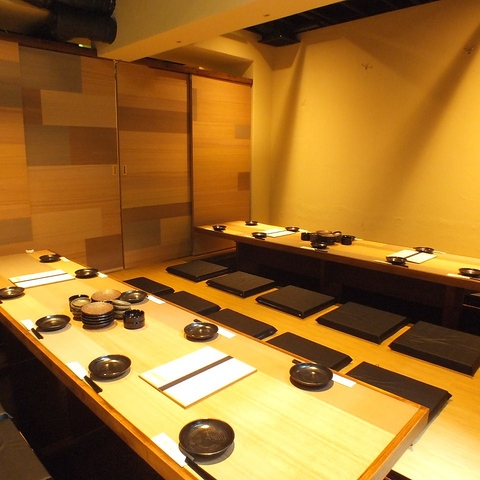 【掘りごたつ半個室席:2~24名様】半個室空間の中に、掘りごたつ席をご用意しております。最大24名様までご案内可能。足を伸ばして寛げるのでリラックスしてお過ごしいただけます。企業宴会やグループでのご利用におすすめです。