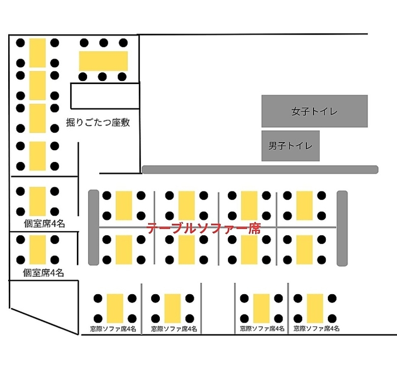 | 掘りごたつ | あり :仕切りの無いオープン席です。大人数の宴会向けです。 |