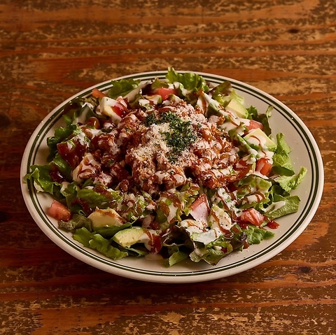 メイシーズ人気No.1料理!ターメリックライスにレタス、アボカド、トマトをのせて、ケイジャンの効いたチキンNY発の屋台メシ、迷ったらこれ!!