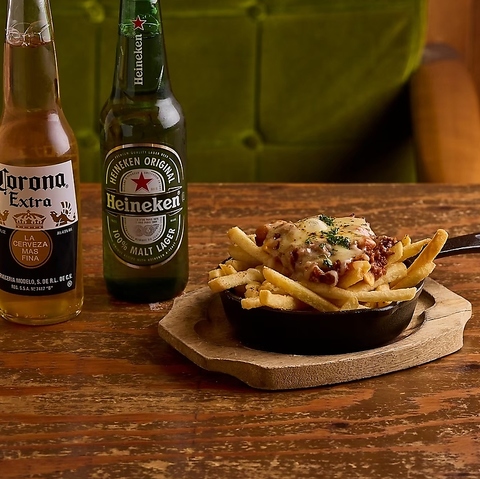 フライドポテトの上にチーズチリコンカンをたっぷりと乗せました。