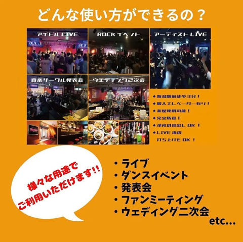 新潟駅から徒歩3分!ライブ、ダンスイベント、発表会、ファンミーティング、ウェディング2次会などご利用可