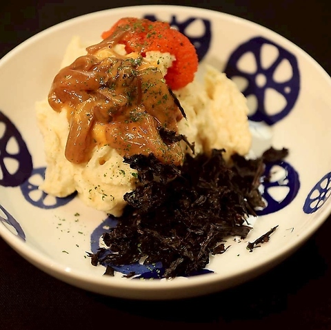 ポテトサラダに明太子を練り込み塩辛と岩のりの海鮮をベースに作り込まれたShimaオーダー率100%メニュー!