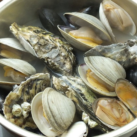 産地直送の牡蠣やムール貝をはじめ、全国各地の『旨い貝』を追い求め、ここに完成!貝の旨味を存分に楽しむために、ただシンプルに豪快に蒸し上げ、熱々を食す!!