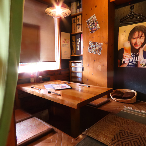 【1F】人気のお座敷掘りごたつ個室。5名様までご利用可能です。周りを気にせず、親しいご友人やご家族との会食に最適です。