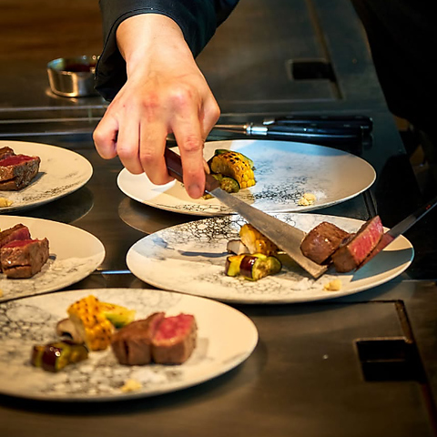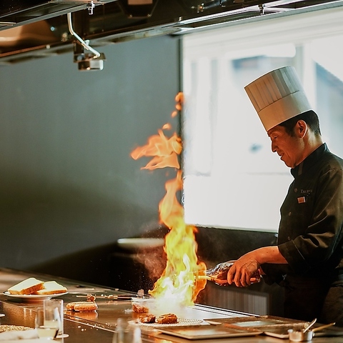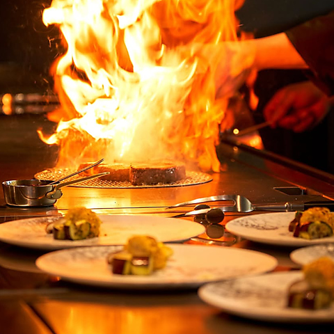 宮崎牛を目の前で焼き上げる鉄板焼きは、最高のタイミングでご提供いたします!旬の野菜やお魚の鉄板焼きもお楽しみいただけます◎さらに、炎が大迫力の薪焼がフレンチと融合したスタイルと、【薪と鉄板】の新しい二つのスタイルで豪快に焼き上げております★ここでしか味わえない【薪焼フレンチ】×【鉄板焼きフレンチ】をぜひご体験ください!