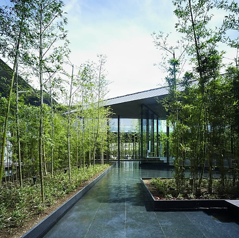 世界的建築家 隈研吾氏によりデザインされたホテル&レストラン!周囲の環境と風景に調和した空間には、しなやかに伸びる竹林が配され、さわやかな風が優しく音を奏で、ラグジュアリーな時間を別荘感覚で堪能できます。夜はライトアップされた竹林とお庭を眺めながら幻想的な空間で自慢のフレンチをお愉しみ下さい。