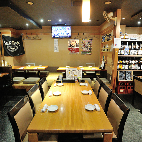 隠れ家的な雰囲気で掘りごたつの座敷席や半個室もあるので宴会に最適!店内には2台のテレビがあり、貸切に限りマイクもご利用できます。人数やコース内容は事前にご相談ください。