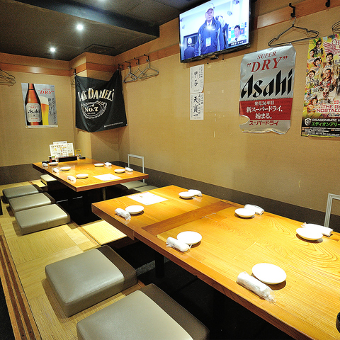 会社宴会や飲み会に♪掘り炬燵で足をのばしてゆくーりお酒を飲んでください!店内にはテレビも設置してるので、スポーツ観戦しながらのお酒も楽しめます♪本町通りのアソルティビルの地下1階でアクセスも◎