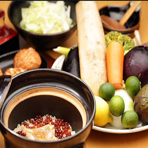 旬の魚を使った特選土鍋御飯は自慢の逸品!お造り4種・旬の土鍋・もち豚等、絶品創作和食を愉しめる全11品のコース!土鍋御飯は日によって変更がございます。ご予約時にご確認くださいませ。