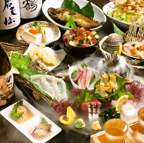 当店目玉の刺身盛り、創作メニューがお得に食べられる!飲み会や宴会におすすめ!3名様からOKのボリューミーコースです♪詳細は店舗までお問い合わせください!※コース内容は季節によって変わります