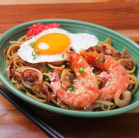 ハワイアン焼きそばのシーフードたっぷりチャウメンにガーリックシュリンプをトッピング!!