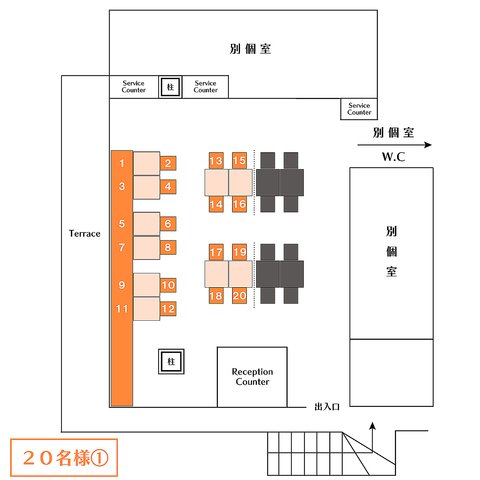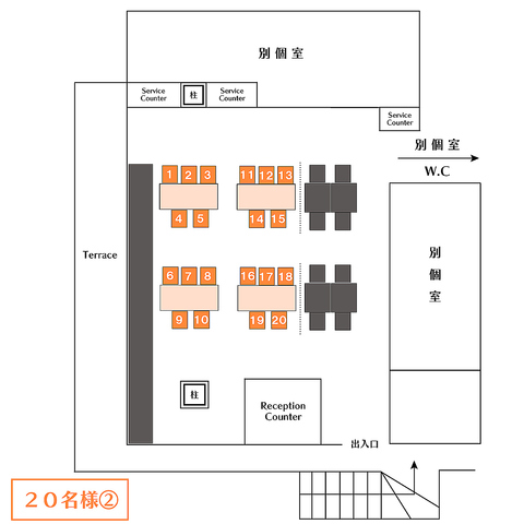 | テーブル | 20名様×1 | 【ホール席】 20名様(パターン1) |