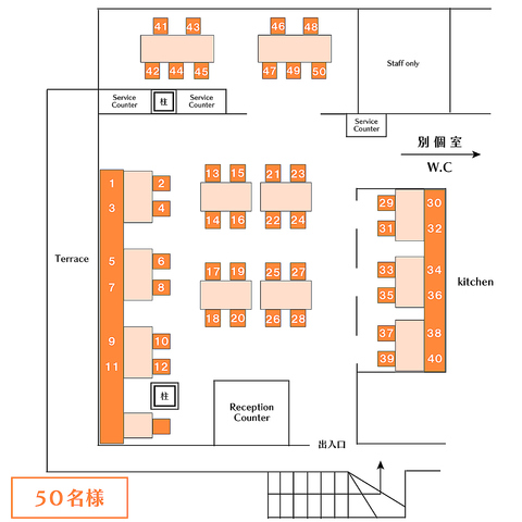 | テーブル | 50名様×1 | 【ホール席+個室】 50名様 |