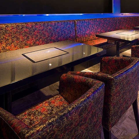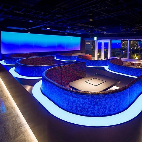| テーブル | 6名様×1 | 【ボックス席:2~4名様×6卓】みなとみらいの海をイメージした非現実的な空間。少人数のお集まりに最適な4名様まで着席可能なボックス席。少し狭くなってしまいますが、6名様での着席も可能。みなとみらいの海をイメージした非日常空間で、大切な人との特別な時間を。また、幻想的な光に包まれたお席はSNS映え間違いなし! |