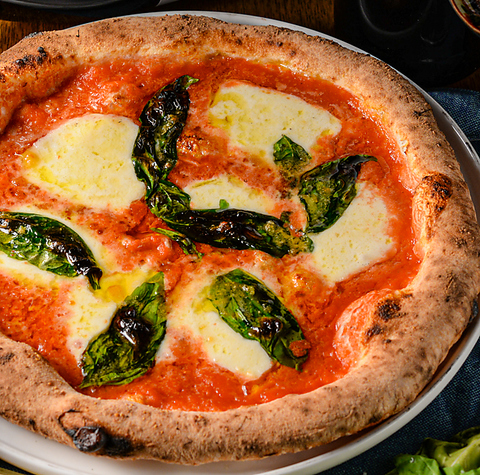 北海道産小麦100%使した自家製生地をピッツァ職人「ピッツァイオーロ」が薪窯で焼き上げます!外はサクッ、中はフワフワ&モッチリな食感のナポリ風ピッツァ♪種類も16種類!お好みのピッツァを見つける楽しみも!