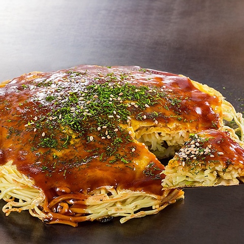 シャキシャキキャベツとの相性がバッチリ◎パリッと仕上げた生めんは今となってはちんちくりんの顔!大豆の油を使用しているので、体にもいいですよ♪素材の味以上に『おいしい!』と感じてほしいので、店長の愛情たっぷりのお好み焼をぜひ一度★